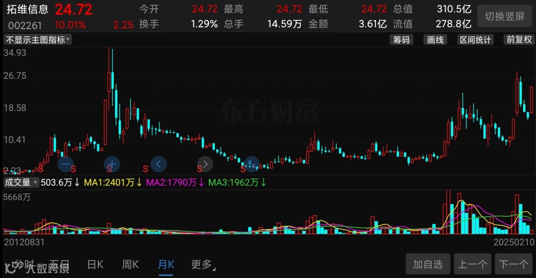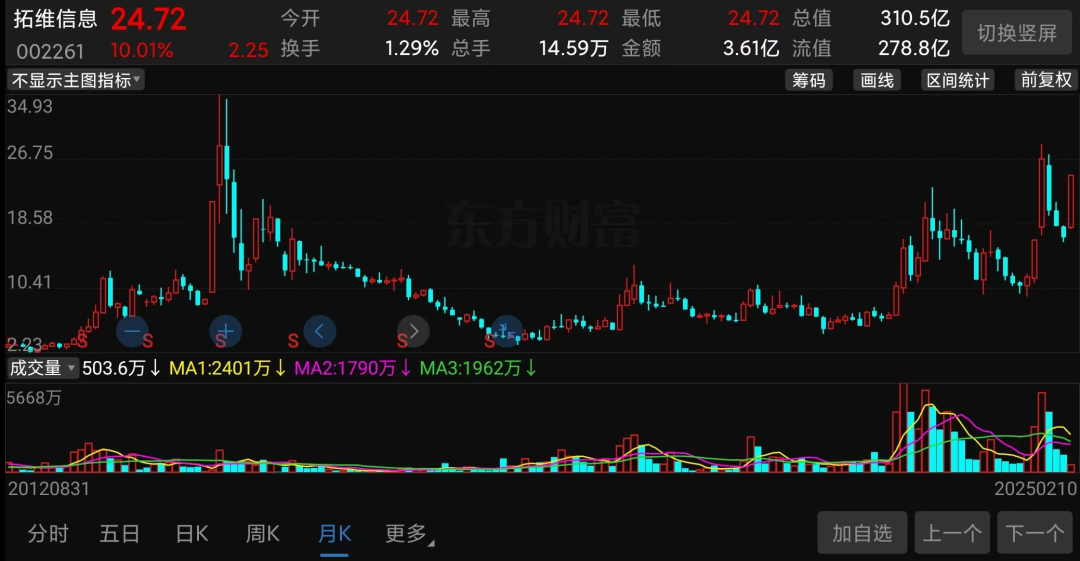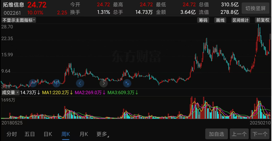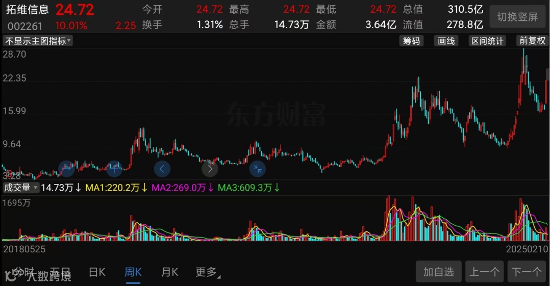 每一次A股科技股的异动,拓维信息的股价都会有所表现。