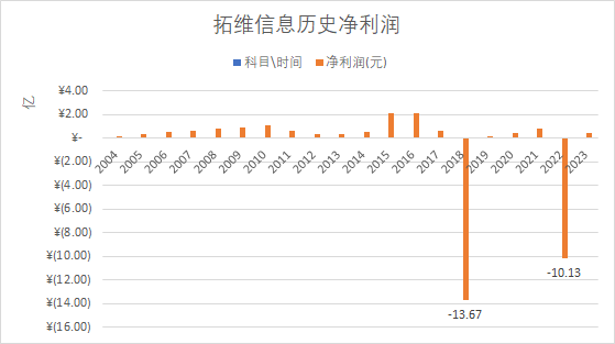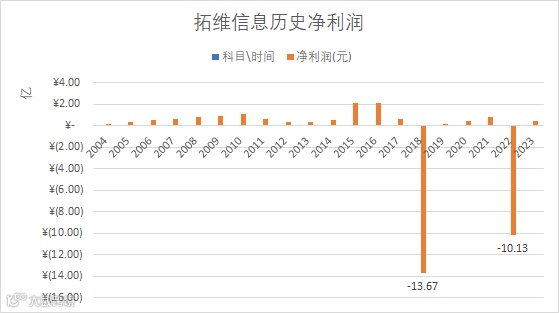 然而,让人感到痛苦的是,正是在拓维信息股价持续上涨的期间,其业绩发生了巨大的亏损,而且这种亏损也并非短期的,而是持续性的。