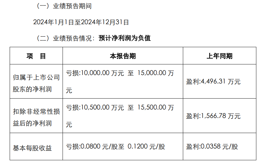 1月18日,拓维信息发布的业绩预告显示,预计2024年实现归母净利润亏损1亿至1.5亿,预计实现扣非净利润亏损1.05亿至1.55亿,较上年同期由盈大幅转亏。