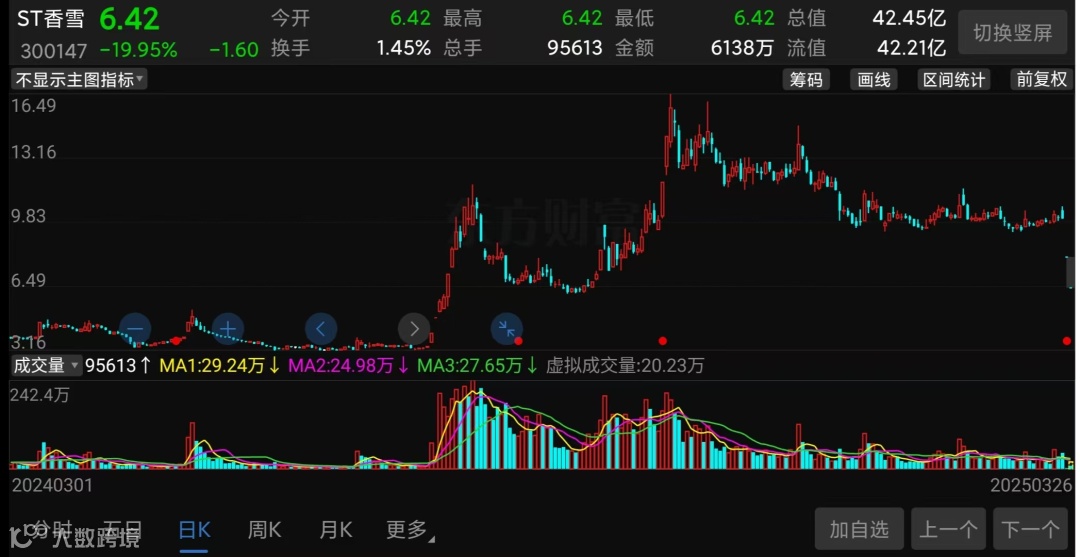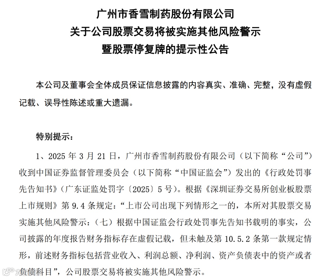 香雪制药虽然存在财报虚假记载,但是也未触发财务造假强制退市规则,因此公司股票被实施其他风险警示,股票名称自3月25日起变更为“ST香雪”。