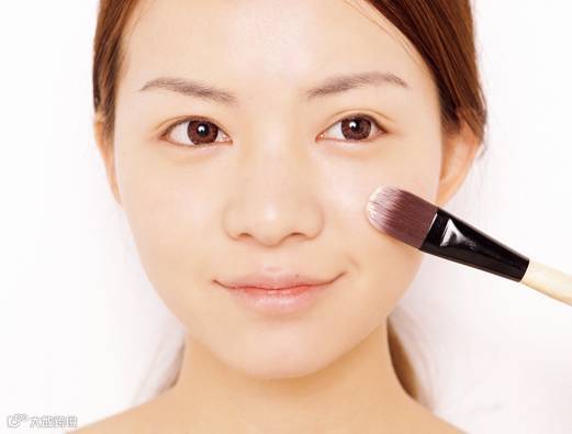 在脸上不同区域分别点上粉底液,由内向外点涂,呈扩散状,之后用刷子或是中指&无名指都可以。