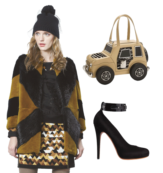 2.本款皮草运用茧型廓型和运动感几何图形的拼接皮,使得这件皮草前卫又不失复古优雅的魅力。