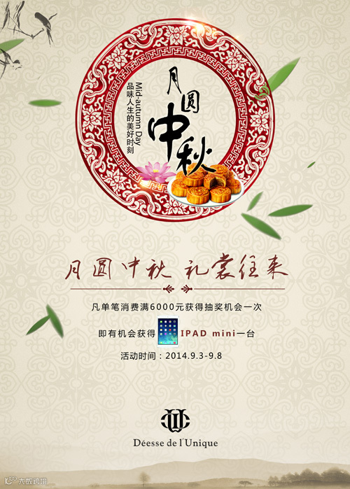 活动优惠,悦享美丽,凡单笔消费满6000元获得抽奖机会一次,即有机会获得IPAD mini一台。还有更多好礼相送,机会不容错过。