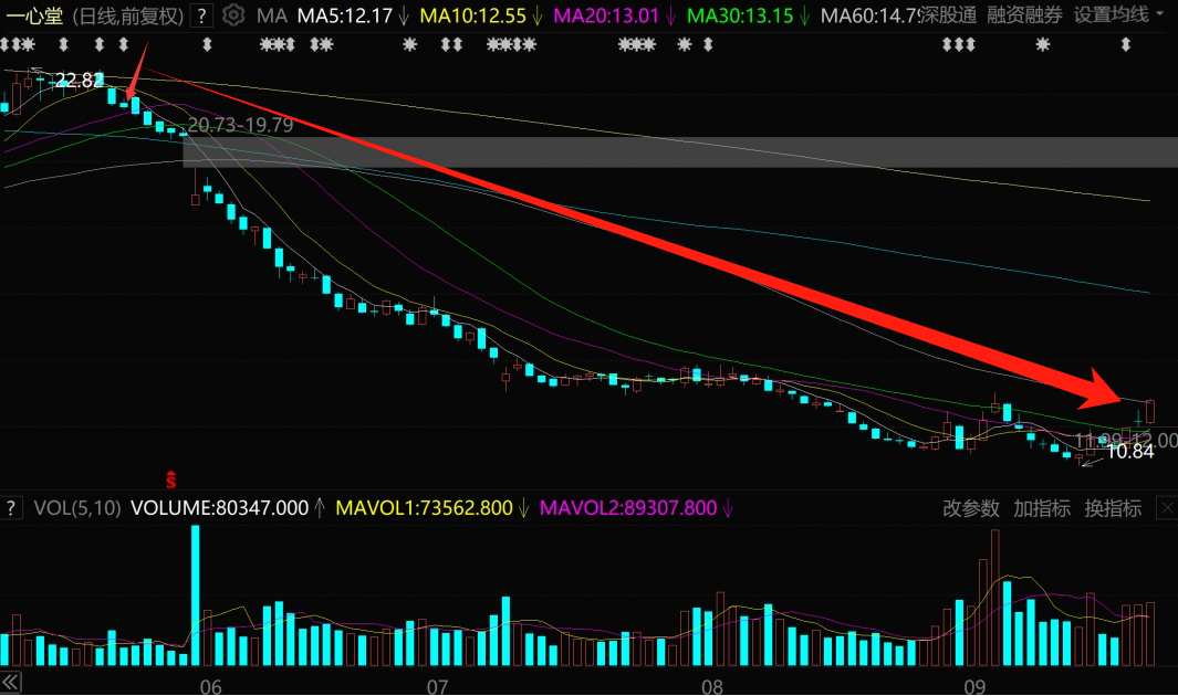 或许是此事让资本市场对一心堂产生了严重的负面心理预期,自一心堂被国家医保局约谈开始,其股价就出现单边下跌走势,从5月下旬的22元附近一口气跌到了9月18日最低的10.84元,4个月时间股价腰斩!