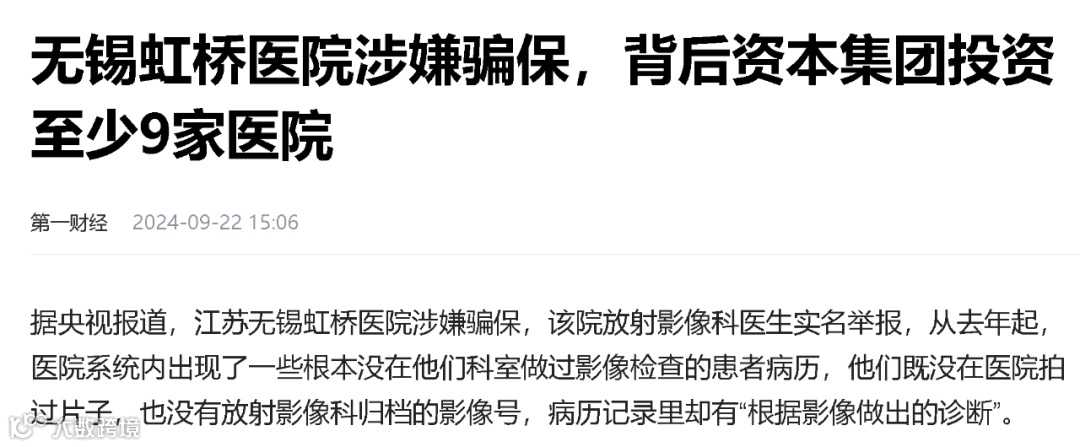 最近,无锡虹桥医院涉嫌骗取医保一事东窗事发。
