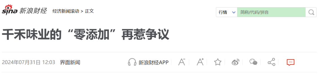 今年上半年千禾味业业绩的放缓似乎也与添加剂有关。