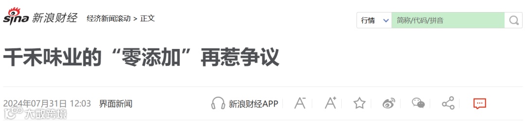 与当初的海天味业类似,今年上半年一直标榜自己“零添加”的千禾味业突然遭到消费者对其零添加的质疑,质疑点倒不是关于是否真的添加防腐剂,而在于其“千禾0”的标志存在欺骗消费者、打擦边球的嫌疑。