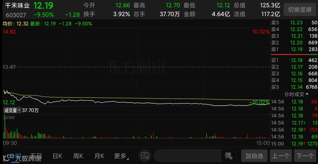 特别是在业绩失速的半年报之后,今天千禾味业股价一度跌停!
