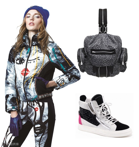 6.想要保暖又摆脱臃肿,这款印花羽绒衣绝对是你不二的选择,搭配同系列的印花打底裤,套装穿出时髦运动风。