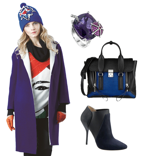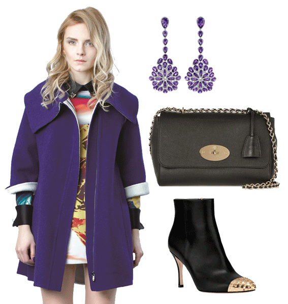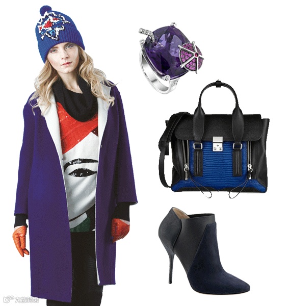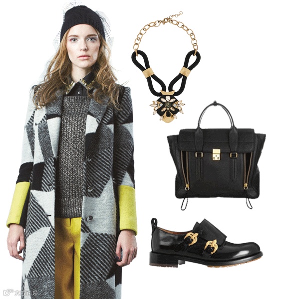 2.带有一点个性风格的几何图形毛料,区块艳色剪裁,H型大衣线条让身型比例拉长,帅气又时髦。