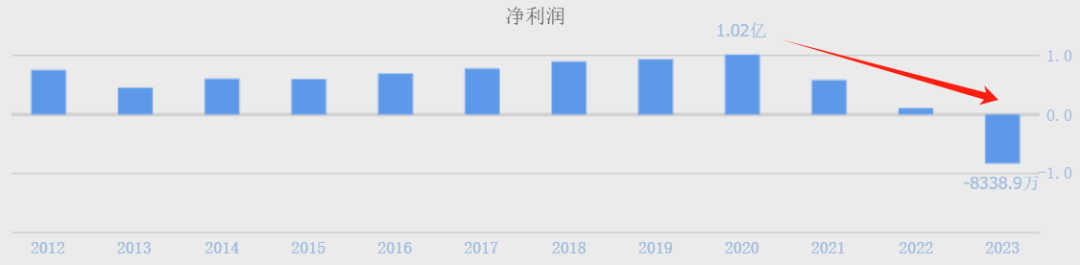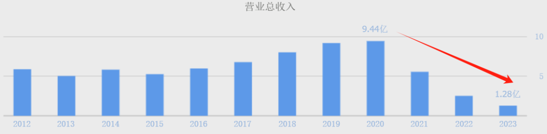 然而,2020年之后画风突变,营收刷刷地快速从2020年的9.44亿降至2023年的1.28亿,净利润更是从盈利1.02亿降至2023年亏损8338.9万。