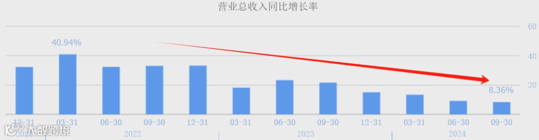 不过,这些辉煌业绩表现也只是三花智控2023年前的情况,进入2024年之后的三花智控营收增速、净利润增速骤降,2024年前三季度三花智控营收205.63亿、同比增长8.36%,净利润23.02亿、同比增长6.59%。