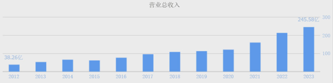 营收方面,2012年时三花智控一年的营收只有38.26亿,到2023年的营收已经达到245.58亿,11年营收增长了5倍多,较18年前的2005年的营收4.94亿更是暴涨48倍多。