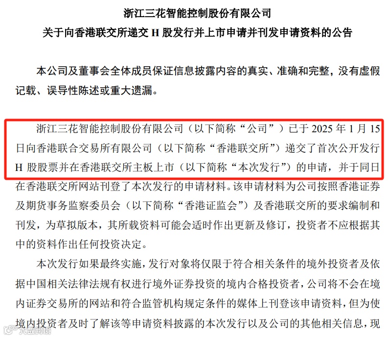 然后,就在这个时候,三花智控向港交所提交了上市申请。