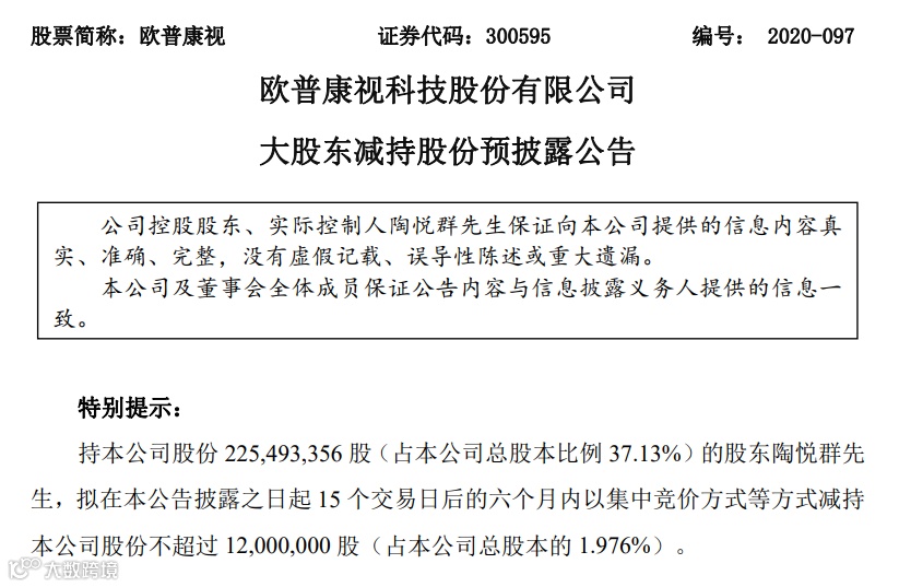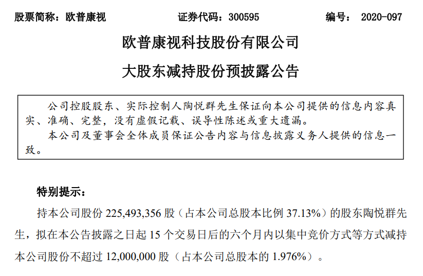 就在欧普康视产品疯狂涨价、股价疯狂上涨,市值疯狂飙升的时候,老板陶悦群及股东们完成了超20亿的减持套现。