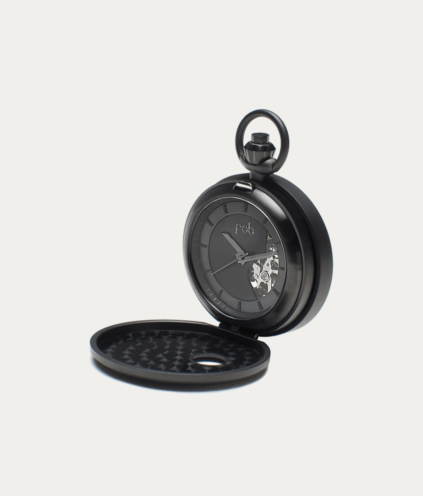 蛇年出行,以酷示人。R40系列是FOB的第一个系列产品,灵感来自创始人从朋友祖父那继承的怀表,传承过去经典,同时FOB渴望有所创新,将怀表变得更加摩登现代化,把怀表打造成更具造型感的怀表项链。而R100 BLACK MATTE怀表,全黑哑光表壳点亮整身造型LOOK。