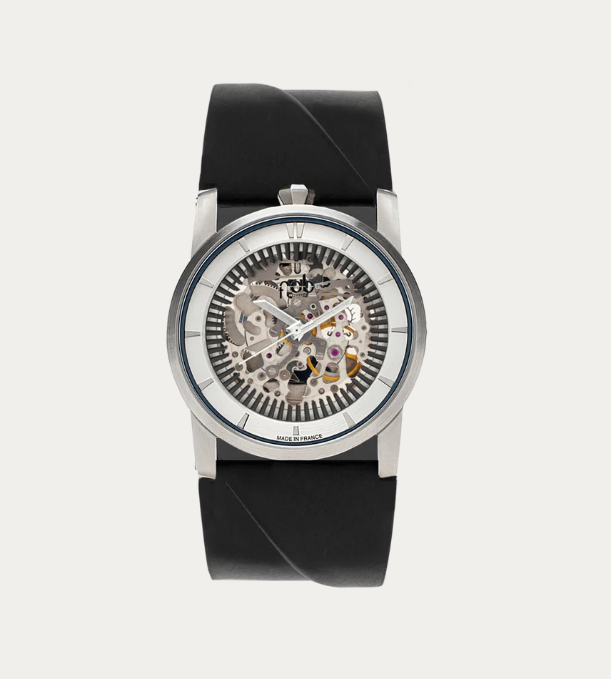 R413系列以大表盘的设计显著,更加中性大气,尤其是R413 Sliver Skeleton整个表盘全透设计,机械机芯清晰可见,线条干净利落,酷感十足。