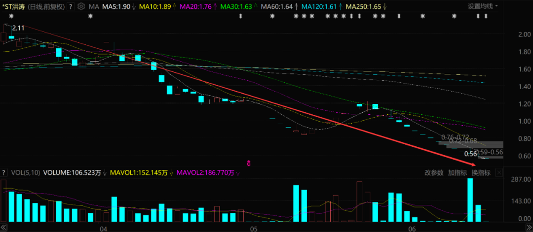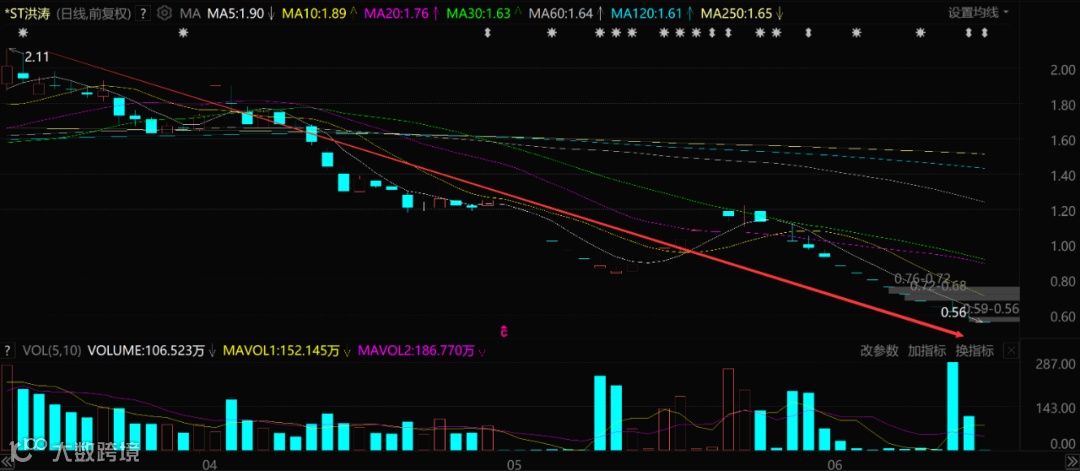 唯一没有争议的是,洪涛股份每天都在跌停。短短3个月其股价从2元多跌到了现在的0.56元,短期跌幅高达73%,期间更是出现了多个“一波流”式的连续跌停。