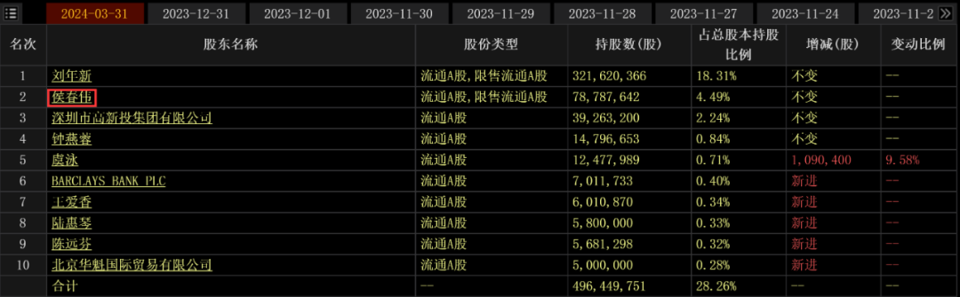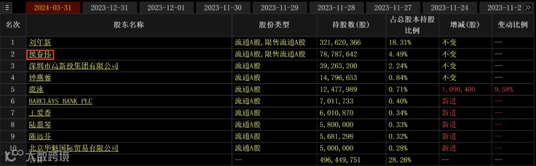 侯春伟还是洪涛股份第二大股东,截至今年一季度末,持股比例为4.49%,持股数约7878万股。