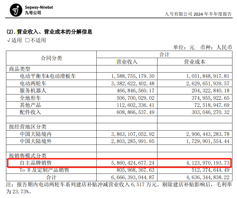 谁是中国最火“电驴”公司?有人说雅迪,有人说爱玛,有人说新日,有人说九号。 今年5月中旬电动自行车行业新规之后,A股、港股的电动自行车上市公司股价都出现了一波较深的下跌,雅迪控股、爱玛科技、新日股份等股价均跌超30%,只有曾严重依赖小米的九号公司股价表现相对抗跌,目前股价已经创近两年新高。 在进一步摆脱对小米的依赖之后,九号是不是更受市场青睐? 暴跌8成后 股价年内翻倍 九号公司有一个极具科技感的logo标志“Ninebot”,直译过来就是“九号机器人”,或许有些人会与锐眼哥一样,曾很长一段时间搞不明白九号机器人为什么是卖电动自行车的而不是卖机器人的? 这个问题在九号公司通过发行存托凭证而不是股票在A股科创板上市几年后,答案逐渐清晰,九号公司依托小米的大平台以做平衡车起步,后逐渐延伸到电动自行车领域,然后把电动自行车卖成了全国前五强,当然九号也的确有些机器人的业务,但占比实在太少。 九号公司的上市方式对于A股股民来说是非常新颖奇特的,A股股民买入九号公司时买的并不是它的股票,而是它的存托凭证,10份存托凭证可以换一股股票。 当然了,九号公司的A股存托凭证价格表现也是相当有意思,先是在4个月内较发行价暴涨493%,然后用三年时间暴跌80%,再然后用半年时间翻倍,走势就像过山车! (九号公司存托凭证价格走势截图) 可以看到,九号公司上市时涨的有多疯狂,后来跌的就有多惨烈。 单从价格变动的角度看,可以说,年内九号公司存托凭证价格从22.58元涨到最新46.26元,其原因可能纯粹就是市场自身的纠偏行为,跌过头了反弹一点,正如当初涨过头了来了一个长时间的暴跌一样。 但是,在这个过程中显然不单单只有市场一个因素,还有九号公司自身的因素,特别是其长时间对小米平台的依赖问题,二级市场投资者多少还是有所顾忌的,一旦失去小米这个大平台,九号公司还是现在的九号公司吗? “去小米化”更进一步 自主销售更好? 有意思的是,A股二级市场投资者似乎更认可逐渐摆脱小米的纯粹的九号公司。 正如大家所见,年内以来九号公司二级市场存托凭证价格已经翻倍,特别是在5月中旬电动自行车行业新规之后,九号公司存托凭证更是表现出一定的抗跌性,近期更是逆行业整体创出近几年新高。 在存托凭证价格翻倍的背后,今年上半年九号公司对小米的依赖也大幅下降! 九号公司半年报显示,上半年营收66.66亿、同比增长52.2%,实现净利润5.96亿、同比大幅增长167.82%,其中自主品牌的销售已经超过58.6亿、占比超87%,而去年同期自主品牌销售只有32.2亿、占比只有73%左右,自主品牌销售额较去年同期增长超81%。 (九号公司半年报截图) 在九号公司的销售模式中,线下定制产品独家分销的代表客户就是小米集团,销售产品包括九号平衡车、九号平衡车Plus、Ninebot miniPRO、小米米家电动滑板车、小米米家电动滑板车Pro等,并且公司在除小米之外的平台销售九号平衡车、九号平衡车Plus、Ninebot miniPRO产品需经小米授权。而自主品牌销售包括线下自己的经销商、线上淘宝京东等电商以及包括小米有品在内的线上M2C直营。 自九号公司存托凭证在科创板上市之后,其自主品牌销售占比其实是逐年提升的。2021年上半年自主品牌销售占比只有30%,2021年底提升到47.75%,2022年上半年为54.62%,2022年底为61.57%,2023年上半年为73.52%,2023年底为80.11%,今年上半年又进一步提升到87%。 2021年,九号公司营收增长率开始明显下降。但有意思的是,虽然营收增速放缓了,但是九号公司的净利润增速反而有所加速了。 (数据来源:同花顺网站) (数据来源:同花顺网站) 到今年上半年,九号公司的净利润达到5.96亿,与2023年全年相当,同比增速更是达到167.82%,而2023年同期为下滑12.97%。 同样值得注意的是,随着对小米的依赖下降,九号公司的毛利率、净利率均出现不同程度的上升,特别是销售净利率在今年上半年达到8.94%,这是之前从未达到过的水平! (数据来源:同花顺网站) 所以,二级市场投资者看好九号公司“去小米化”,从而反映到了二级市场存托凭证价格上。 一众外资股东巨额套现后 内资机构终于入场 遗憾的是,二级市场投资者的看法似乎总是与公司内部的看法不太一样! 目前,九号公司在业务上已经逐渐摆脱对小米的依赖,同时在股东结构上小米系股东也正在加速退出,今年上半年小米系股东Shunwei TMT III Limited已经退出十大股东之列,实控人高禄峰进一步加强了对公司股权的控制。 (数据来源:通达信) 可以看到,即使现在小米系基本退出,九号公司的十大股东依然都是外资。实际上,自九号公司存托凭证上市以来,频繁巨额减持的也是外资,其中红杉系和小米系合计减持套现超62亿,实控人的一致行动人ZhongTouYuanQuan Group Limited 减持套现超1.18亿,再加上其他一些股东的减持套现,至今股东累计减持套现超65.53亿。 要知道,九号公司上市以来实现的累计净利润仅为21.29亿! (数据来源:i问财、锐眼哥整理) 实际上,从背后受益人的角度看,减持九号公司的这些外资股东也并非都是外资,之所以以外资的形式出现是因为九号公司存托凭证上市采用了红筹股的上市结构。 年内九号公司股东最后一次减持是4月11日,减持股东就是实控人一致行动人ZhongTouYuanQuan Group Limited以及红杉系的HSG GF Holdco III-A, Ltd.,减持方式则是询价转让,接盘方有兴证全球基金、南京盛泉恒元投资