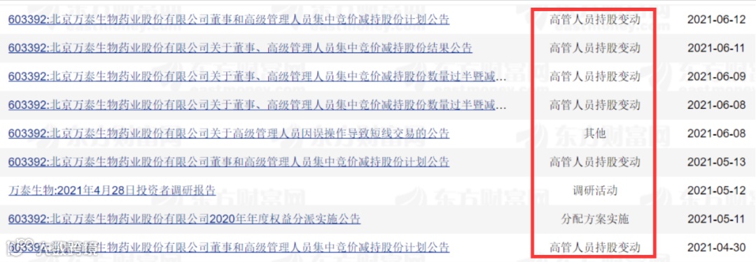 2021年4月底,限售解禁期到了之后,万泰生物的管理层便疯狂减持。