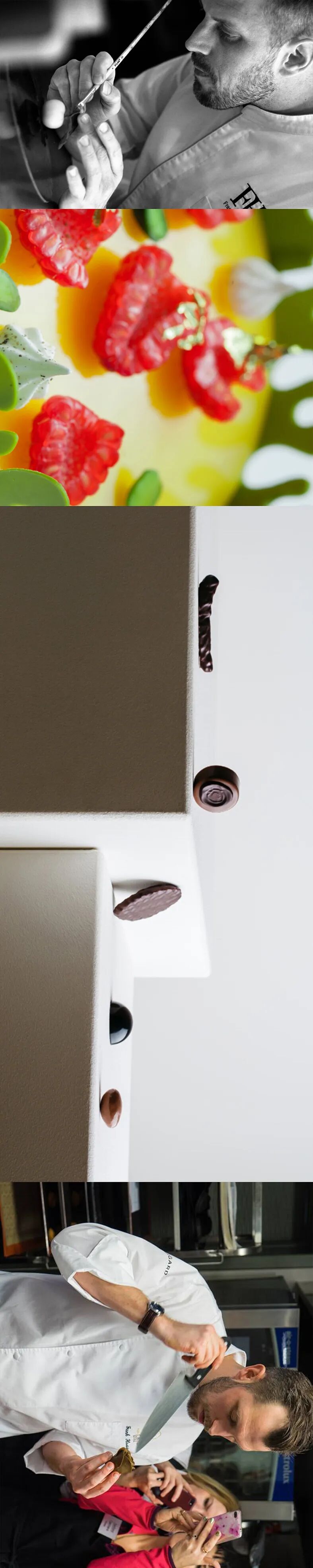 “美学对我很重要,这是我创作渴望的来源”从12岁开始Cédric就在祖父母的宾馆厨房工作,13岁开始在厨房实习,14岁专攻甜点。此后他更是“挤入”法国最优质的甜点学校ENSP学习,毕业后Cédric在巴黎著名甜品店Fauchon学习,Cédric带来最伟大的洗礼,在于他彻底颠覆了巴黎的甜点世界。长期昼夜不分地磨练,让他的手臂操作如机械般精准。对细节的偏执,还体现在自始至终Cédric都亲力亲为每个步骤,哪怕这个步骤极为简单。Cédric对创新的执着也令人赞叹“如果我手里有一个经典配方,我唯一想的就是如何创新。”