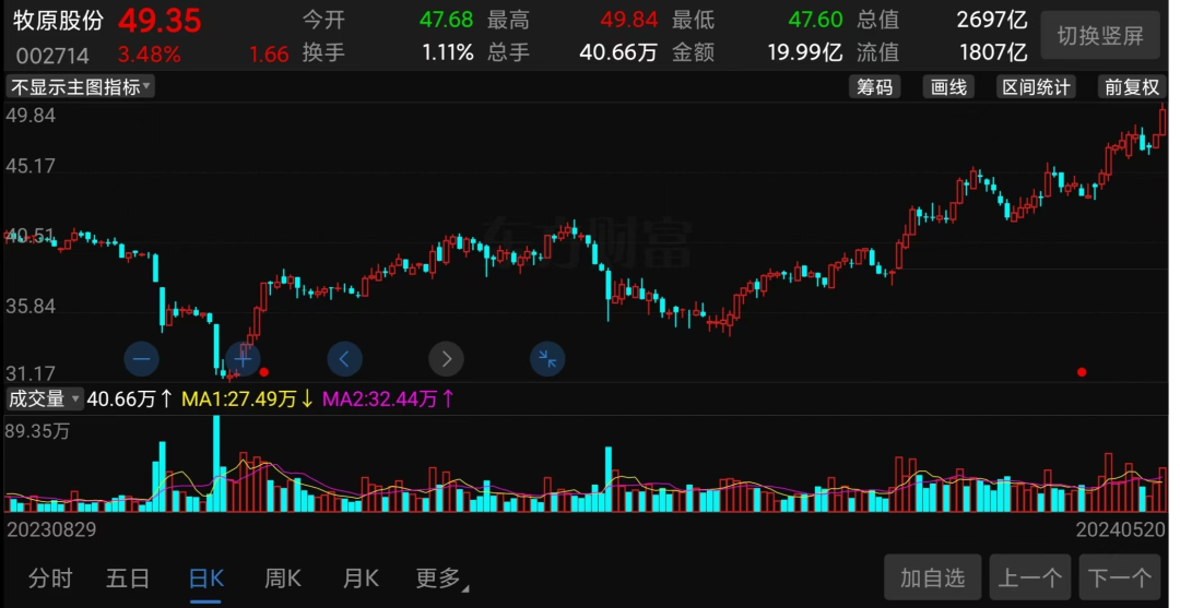 当然,国内养猪、猪肉股还是要看牧原股份、温氏股份、新希望这三家养猪巨头。近一个月,牧原股份涨超14%、今年以来已经涨近20%,温氏股份近一个月涨超18%,新希望近一个月涨超17%。