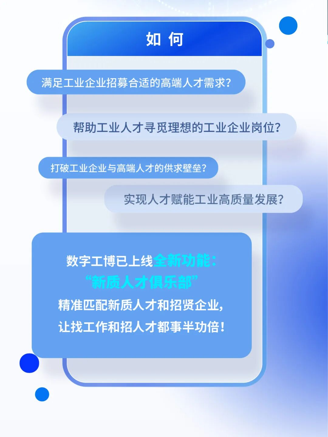 数字工博全新功能“新质人才俱乐部”上线——寻工业人才,遇工业伯乐!