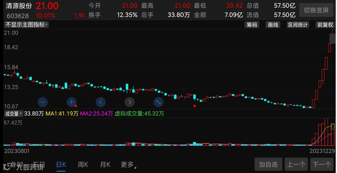 正好清源股份的股价就是在这个数据发布后的第二天开始拉涨停的,这其实也好理解,光伏新增装机量爆发就意味着对光伏支架的需求增长,从这个逻辑自然刺激清源股份的股价。