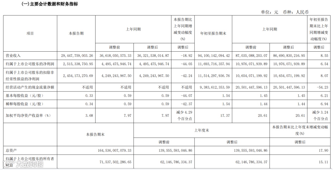 所以,今年隆基绿能的业绩其实也不是太好,前三季度的净利润增速已经降至个位数水平,净利润116.94亿、同比微增6.54%。单三季度则已经开始出现大幅度的下降,净利润25.25亿、同比下滑44.05%,同期营收294.48亿、同比下滑18.92%。