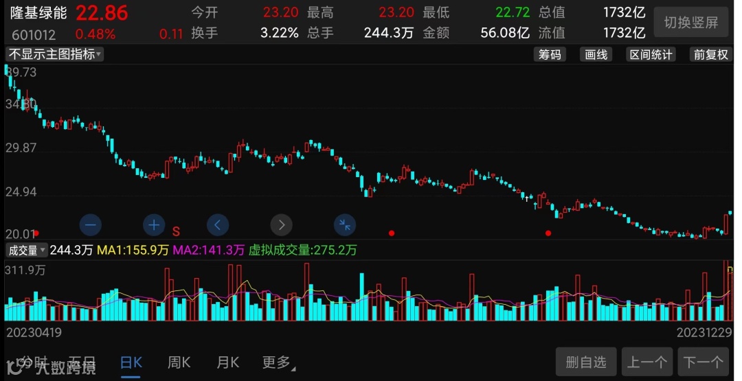 这个业绩也算是比较符合隆基绿能年内近60%的股价跌幅了,股价较高位更是已经暴跌超72%。