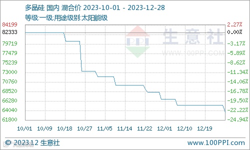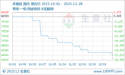 生意社数据显示,截至12月28日多晶硅价格持续下跌,单周多晶硅价格下跌幅度2000-3000元/吨,降幅2.55%,新增产能部分已经量产,供应量明显增加,硅料大厂库存高企,多数大厂降价销售。