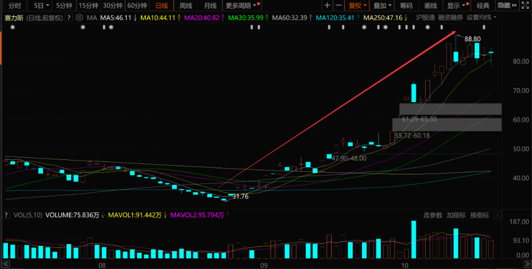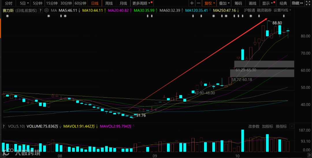 这直接导致赛力斯的股价出现了暴涨,从30多元一口气涨到了近90元。