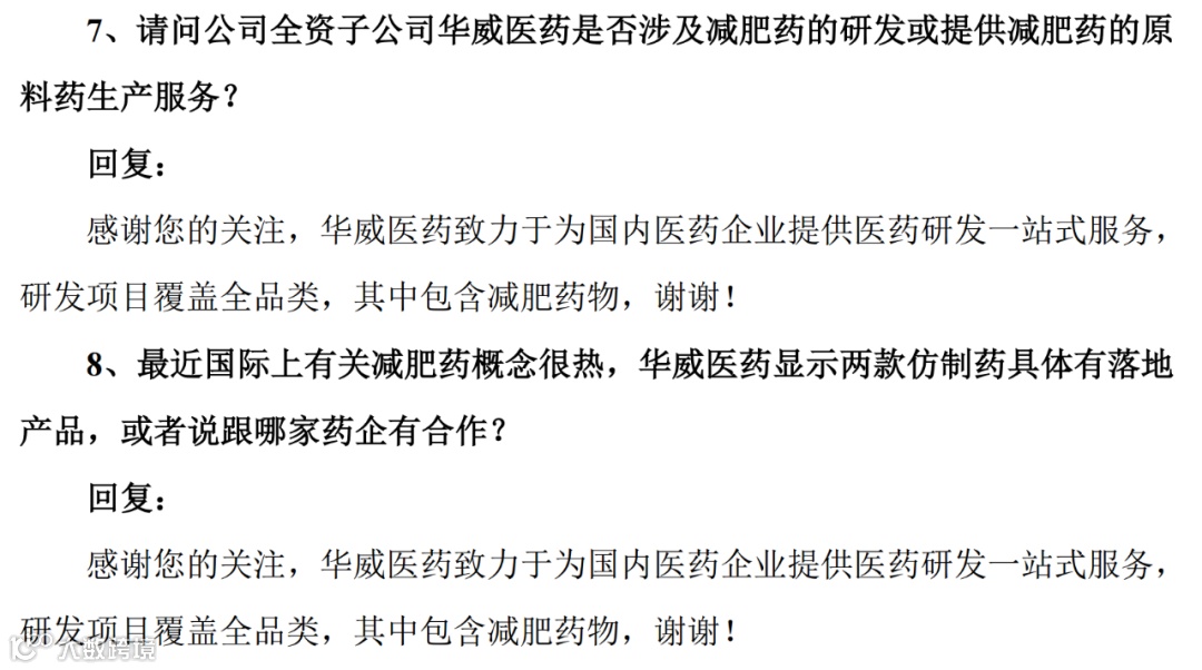 总结一下,百花医药在这个公告里透露了大量跟减肥药有关的消息,包括了研发项目中有减肥药产品、控股子公司生产“肽”类注射液。