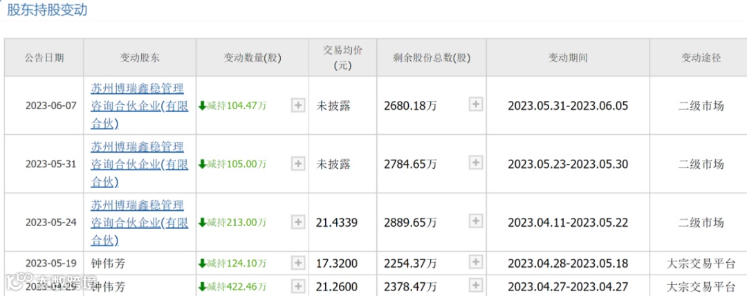 袁建栋及母亲钟伟芳、苏州博瑞鑫稳管理咨询合伙企业(有限公司)是一致行动人,可以解禁后其套现的金额已经超过5个亿。