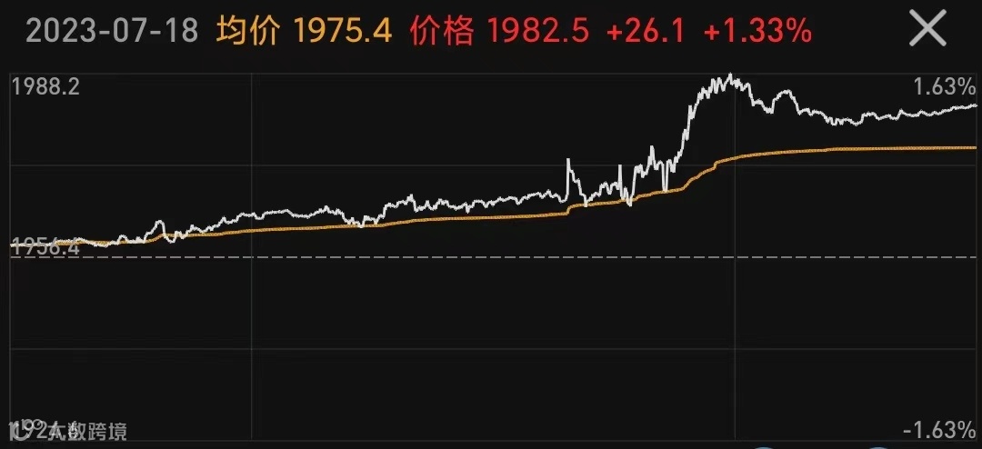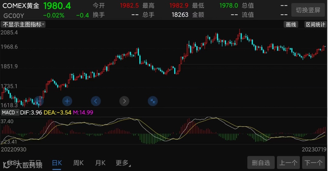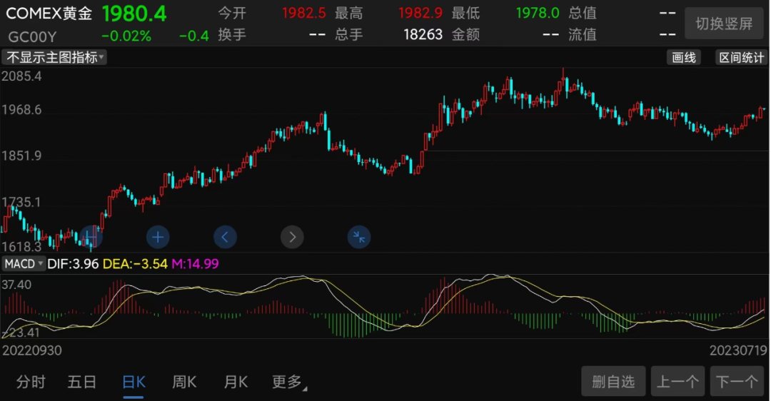 (COMEX黄金主连2023年7月18日分时走势截图)