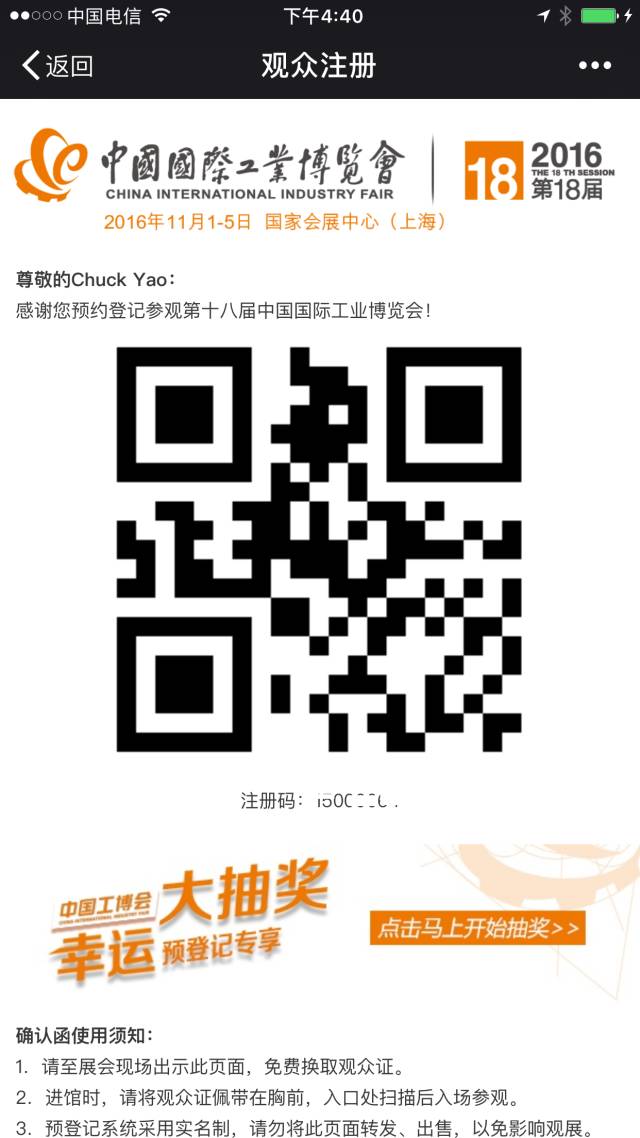 ,只需输入本届工博会的参展信息和参展证编号,去年的参展证今年也可以使用了,是不是既方便又环保?