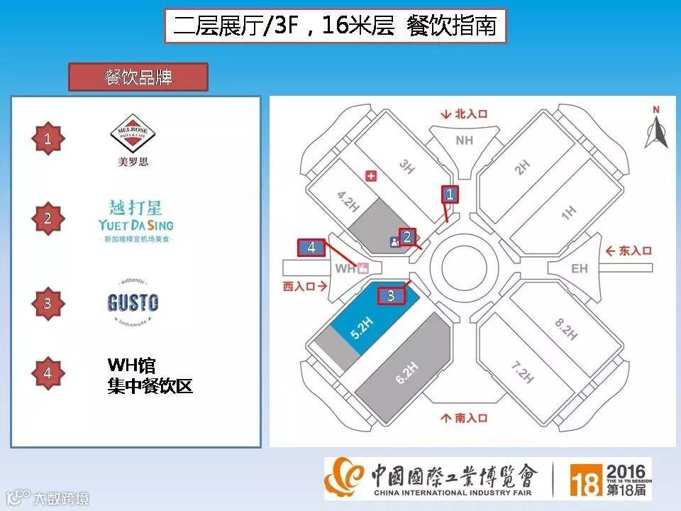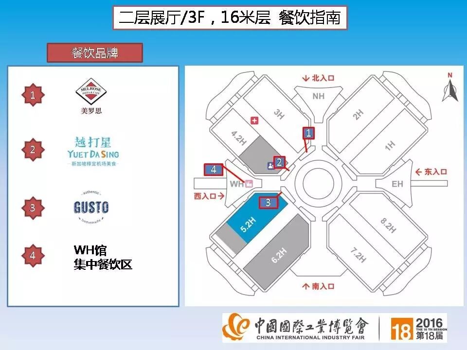 为了满足众多中国工博会的展商和观众需求,今年展会现场我们在位于3F的WH馆设立工博会临时集中餐饮区,我们为您精选了以上部分商家入驻,在敞亮的展厅内用餐您一定不用为排队而烦恼,尽情享受美味!