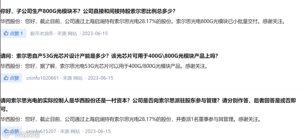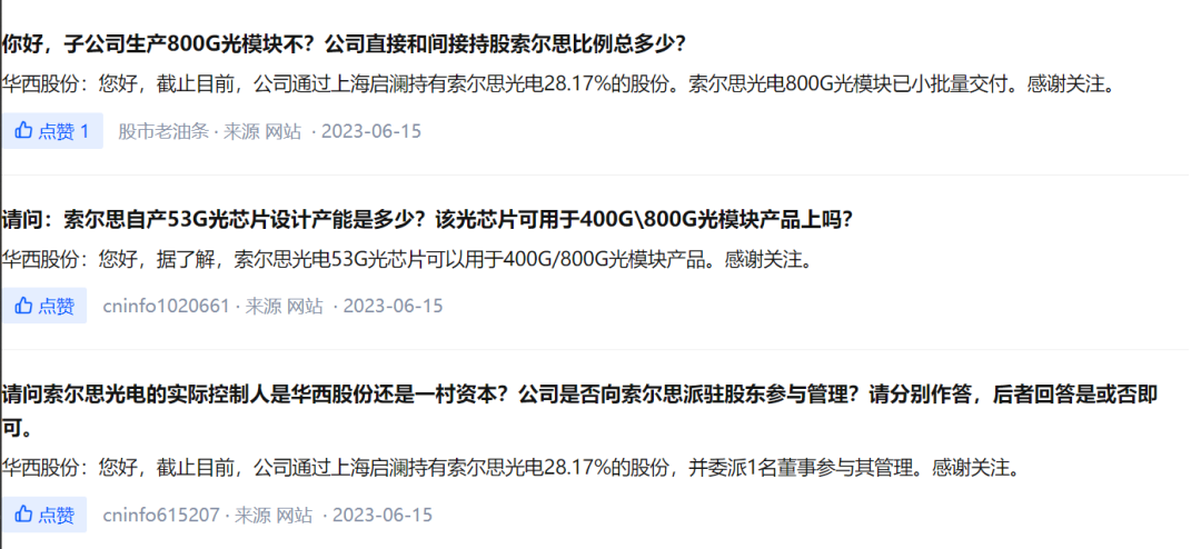 6月15日,华西股份发布的股价异动公告显示,不存在应披露而未披露的重大事项。然而,在华西股份的互动平台上却充斥着关于光模块、光芯片的讨论动态。