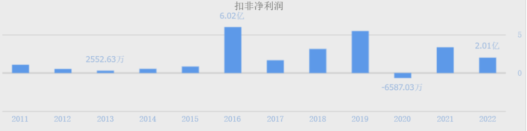 2022年虽然实现了2.01亿的扣非净利润,但是对应的同比增速却是-40.27%,较2021年大幅下滑,而这样的下滑在近十年却也是家常便饭的,2019年赚5.5亿、2020年直接亏损超6000万,2016年赚了6.02亿、2017年直接又降至1.67亿、暴跌72.27%。