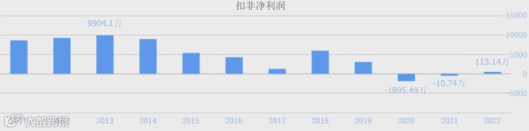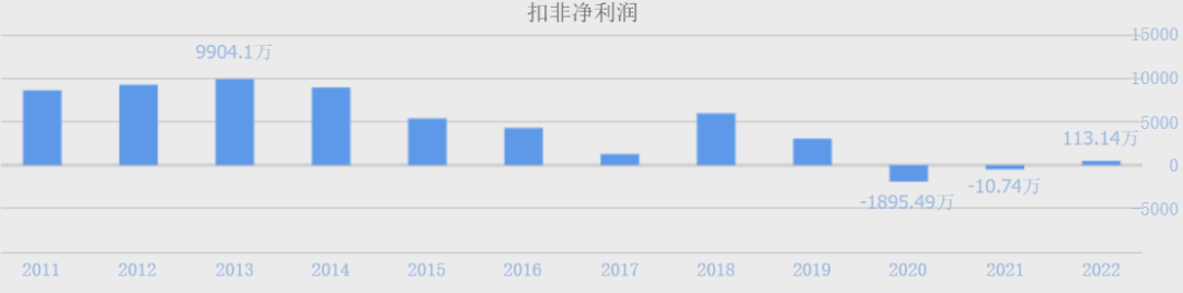 资料显示,跃岭股份是在2014年初A股重启IPO那一波上市的,上市之前公司报告的业绩特别好、特别稳定,2013年实现的净利润还稳稳的突破了1亿大关,结果从上市当年就开始一路下滑,至2020年归母净利润亏损643.82万、扣非净利润亏损1895.49万,2022年公司归母净利润再度暴跌超63%。