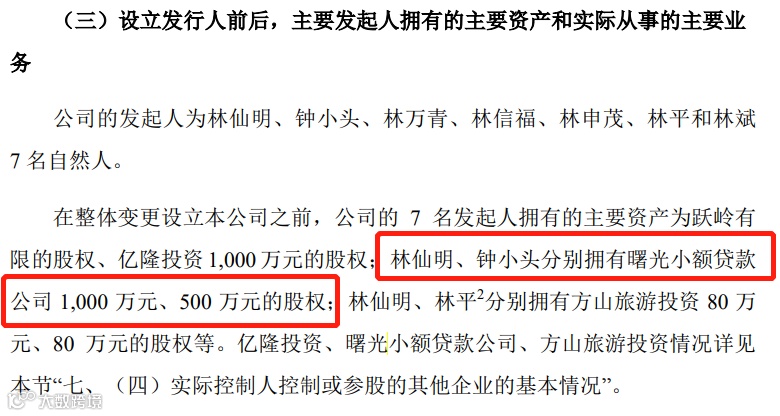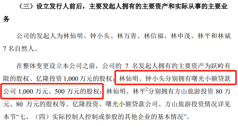 其实这种热衷投资是有其根源的,据公司招股书显示,跃岭股份似乎是从小贷公司起家的。