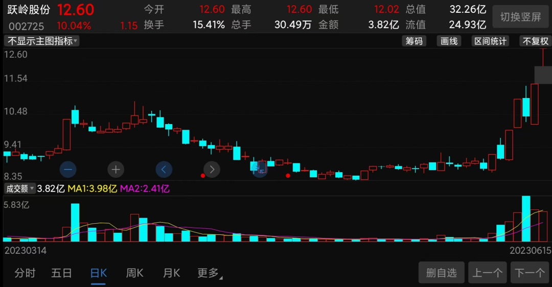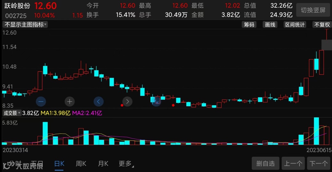 但是,这两天股价连续涨停,最近5个交易日出现4天涨停的跃岭股份(002725.sz)确实只能用这么怪异的词来形容了。