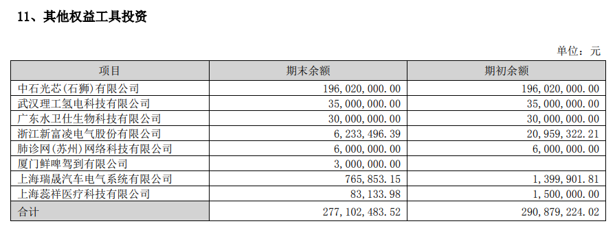 可能小额贷款起家的经历就是跃岭股份后来喜欢金融投资的基因来源,截至到2022年底,跃岭股份账上持有的投资包括中石光芯、氢电科技、水卫仕生物、新富凌电气、肺诊网、鲜啤驾到等8家对外投资,同时还持有一些以公允价值变动计入当期损益的金融资产、外汇远期合约等。