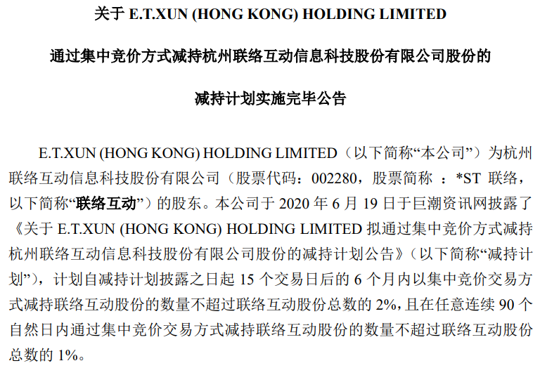 看起来,自联络互动债务危机爆发以来,控股股东、实控人确实被压得够呛,但也是自作孽的结果。不过,与此同时,公司持股5%以上另一股东却减持套现的非常爽。