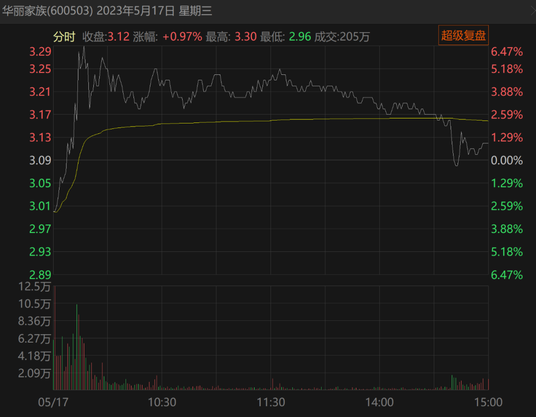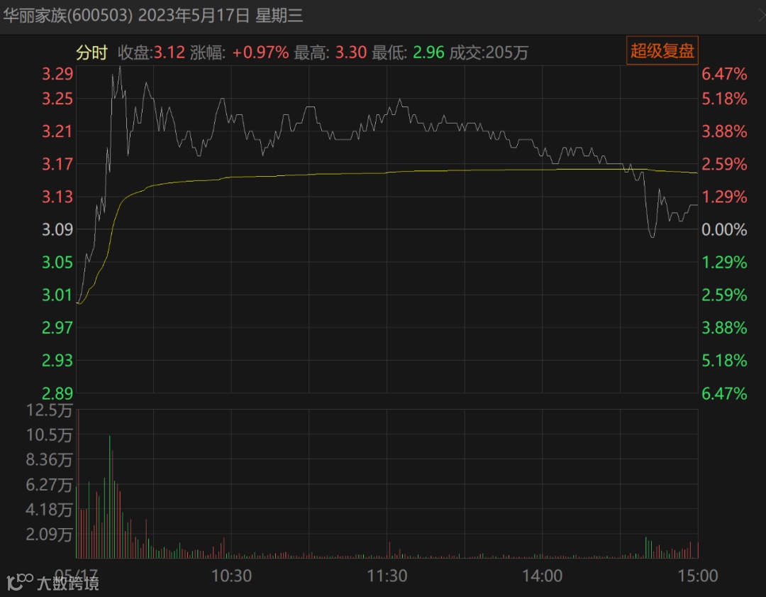 5月17日,华丽家族召开股东大会,当天其股价早盘脉冲拉升超过6%,随后迅速回落,收盘微涨不到1%。