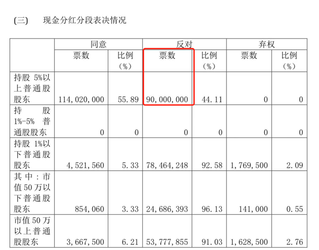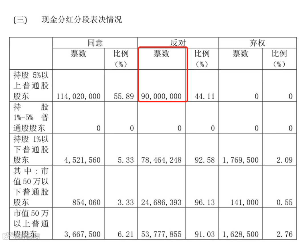 从下图可以看到,华丽家族的分红表决议案中,持股9000万股的泽熙增煦是投了反对票的。