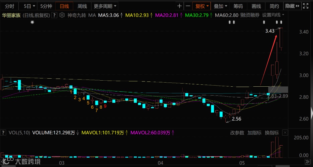 基于这种预期,华丽家族股票在5月16日,也就是股东大会的前一天拉出涨停板。