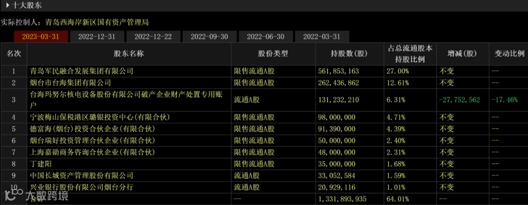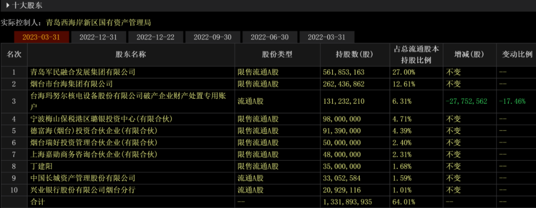 目前,台海核电的实控人已经变为青岛西海岸新区国有资产管理局。