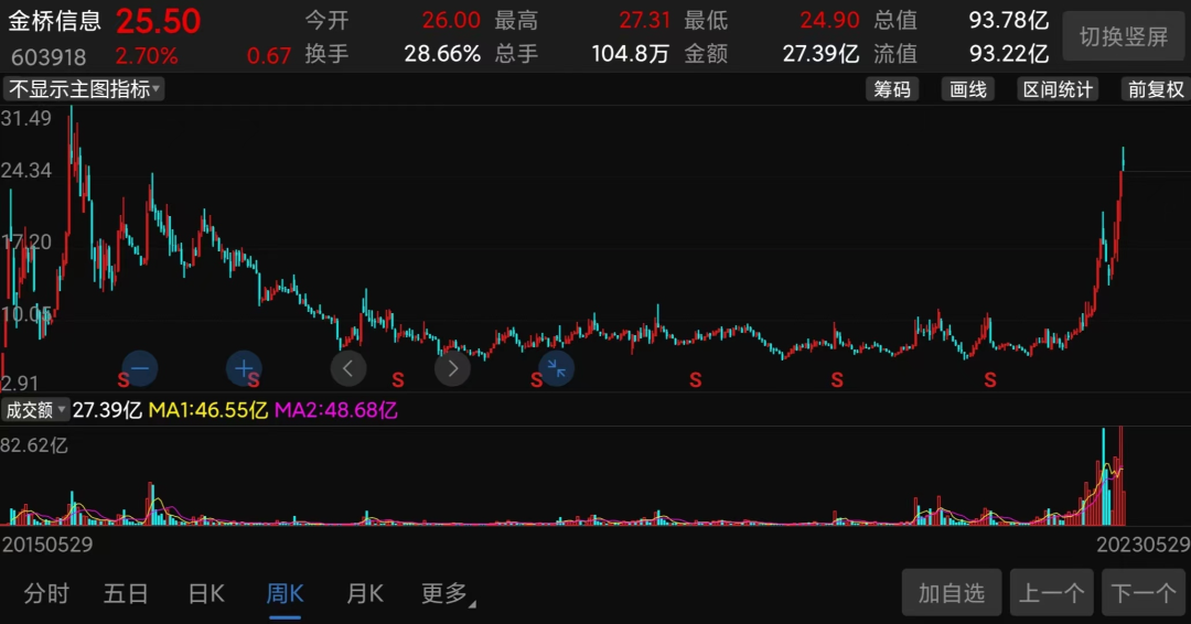 股价短期暴涨,而公司背后的业绩却拉胯的掉渣,这在A股实在已经是司空见惯、见怪不怪的了,金桥信息也不例外。